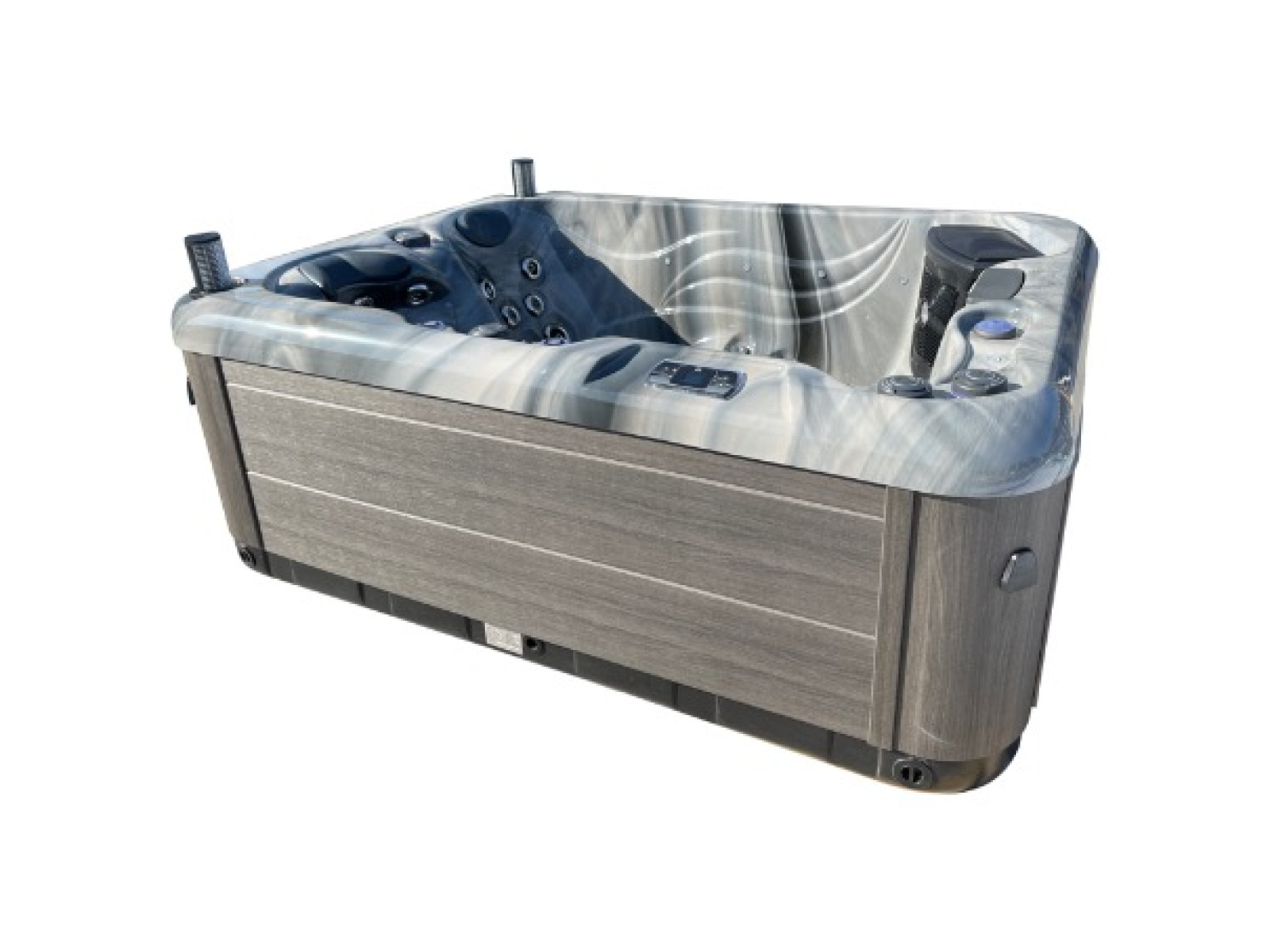 The Cygnus hot tub from our brand new Platinum Spa Series offers the ultimate in hydrotherapy and relaxation, seating up to 3 people at a time with 1 ergonomic seats and 2 non-float lounger. The Cygnus is a 32amp hot tub with a powerful 3kW heater. This luxurious spa also comes with an ozone purification system, superior LX Hydrotherapy pumps which deliver the ultimate massage experience, 50 powerful hydrotherapy jets which target your neck, shoulder, legs, thighs and feet, and a state-of-the-art LED lighting system. It comes in three shell colours: Odyssey Grey, Midnight Canyon and Sterling Silver.